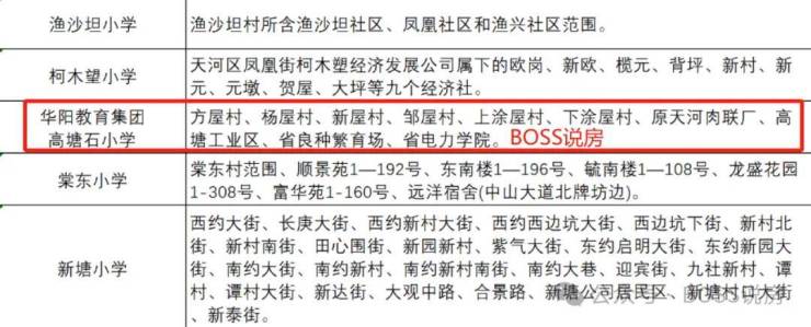 小学方面,附近只有高塘石小学,学校于2023年8月10日就正式加入华阳教育集团,并正式更名为“广州市天河区华阳教育集团高塘石小学”,由原华阳小学向其派出副校长和骨干教师团队进驻,同时该校也将安排教师到华阳小学跟岗学习。