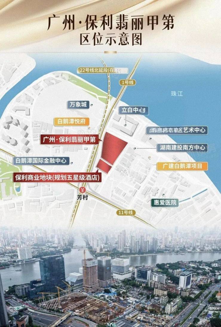 这一地块地处白鹅潭商务区核心区,三江交汇处,周边商业、交通、人文、教育、医疗配套一应俱全,在建的双重奢商业地标——广州万象城、聚龙湾太古里,未来必将为白鹅潭带来非凡体验。