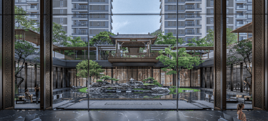 而社区内部,则采用正方首创、珠海唯一的新岭南风格园林,参考吸取岭南四大名园精华,打造“两轴三庭,五进六园”景观布局。