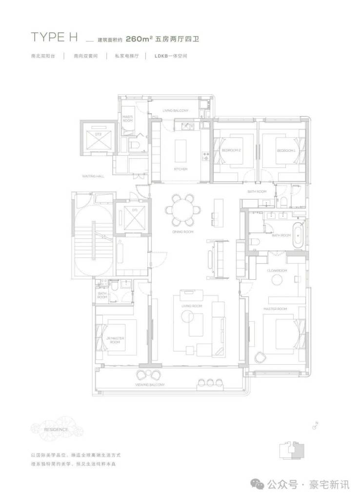 【260㎡户型】南北双阳台-南向双套间-私家电梯厅-LDKB一体化