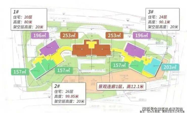 中间2栋为楼王单位,26层高,两梯两户,户型全部为253平大平层,层高达到3.3米。