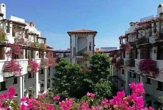建筑围合成西班牙庭院中心区域作为项目的休闲娱乐广场等,使之成为真正的一线海域,西班牙城邦。