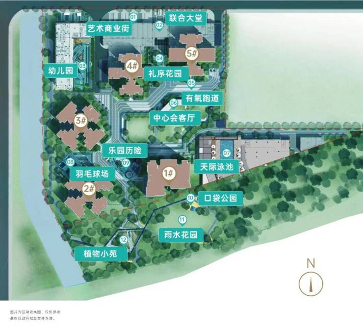 项目总规划共有5栋住宅,配建幼儿园。