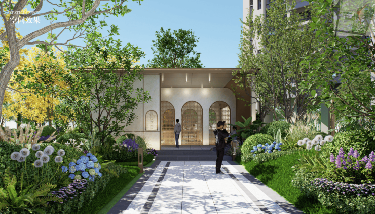 花园不仅是归家途中的风景,更是承载从容与雅致的生活剧场。遵循“四季有景,五感生情”的原则,广地花园【观璟】的一草一木、一花一石,皆经过精心雕琢,与人的活动交织成一幅幅动人的生活画面。