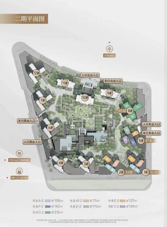 二期住宅总占地约5.7万㎡,总建面约36.9万㎡。