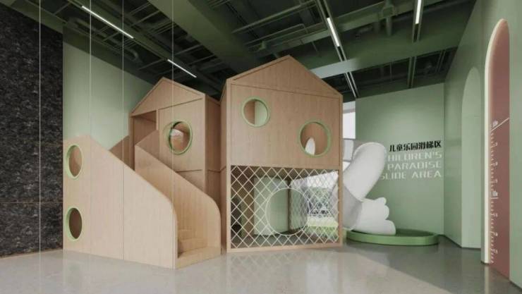 在家楼下,项目二期的架空层会所中,也为孩子打造有专属的儿童主题乐园,布局四点半课堂、图书吧、丛林探索、亲子乐园、儿童游乐园等,让孩子从小就有一处安全而又极富启发性的空间,享受多彩童年和亲子时光。