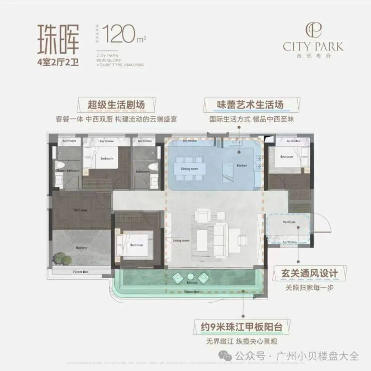 理由一:海珠主城唯一120方南向望江,享稀缺珠江江景景观产品
