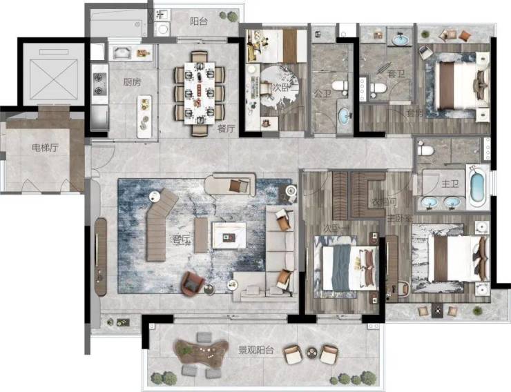 ◇大方厅/中西厨岛台设计/双主套设计奢阔空间尺度,全城罕见约8.3米南向观景阳台,270°一线广角山景大宅,赋予生活无限想象,定义城市进阶圈层。