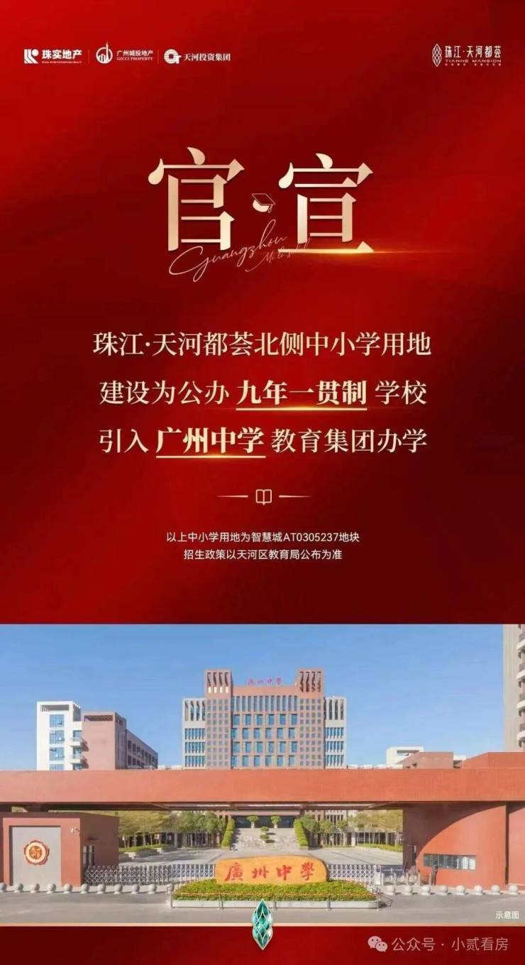 官宣:珠江·天河都荟北侧教育用地建设为公办九年一贯制学校,引入广州中学教育集团办学!