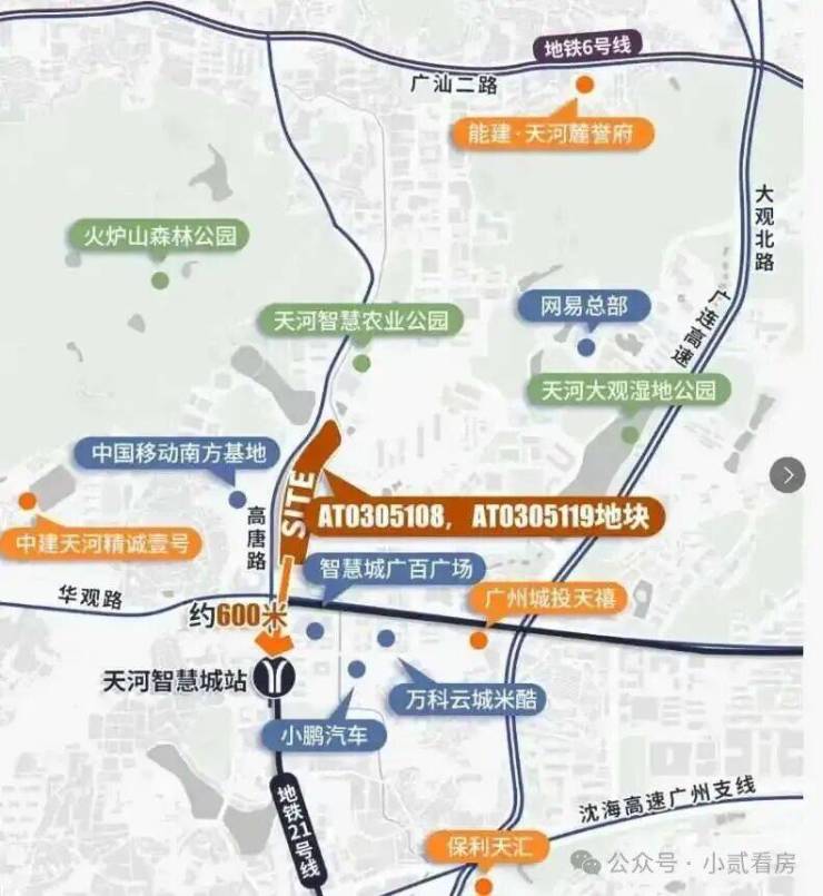 项目距地铁天河智慧城站只有约600米,旁边是智慧城规模最大的商场智慧城广百百货,附近汇集了中国移动南方基地、网易总部、小鹏汽车等知名企业和资源。