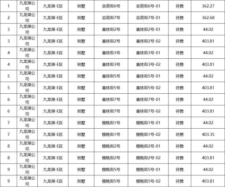 ✮存量房位置:如下表所示