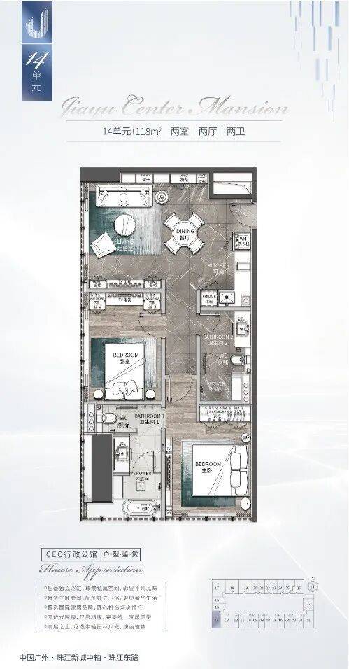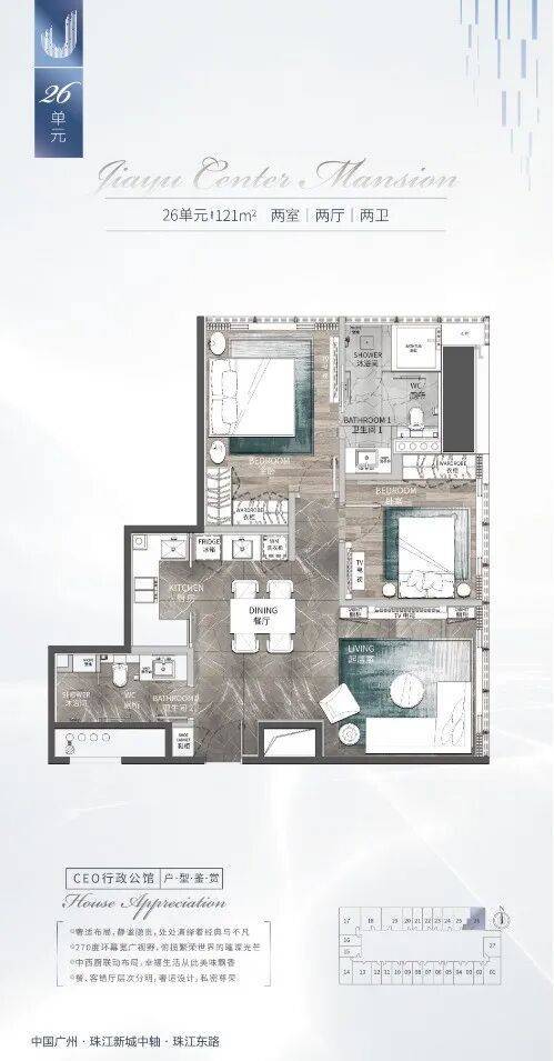【项目名称】:嘉裕中心•J公馆【项目位置】:广州市天河区珠江东路18号【总占地面积】:约128000方【总建筑面积】:约189000方【总规划】:顶级酒店+酒店行政公馆+甲级商务+高端商业(共46层)1-14层:甲级商务写字楼、精奢商业、高端影视会所15层:高端私人酒店会所28-46层:JW万豪酒店【车位数】:807户【梯户比】:7梯27户【产权】:50年【在售面积】:69~180m²【物业费】:12元/元/方