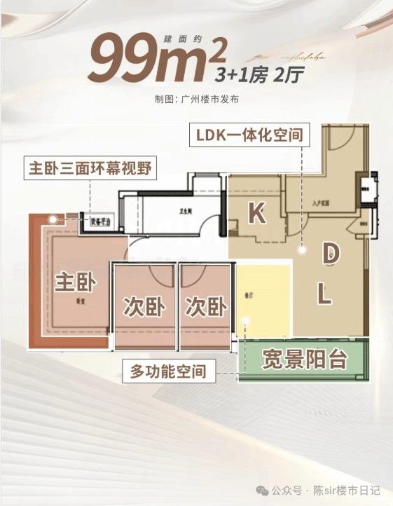 99平户型:IMAX宽景阳台、主卧三面环幕视野设计,室内就像一座移动的观景台。