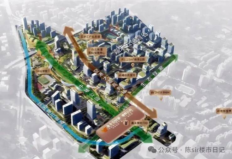 据2022年官方规划,嘉禾望岗定位为“白云新城嘉禾望岗商务核心区,产城融合的TOD综合开发示范区”。重点引入数字科技、智慧电商、智慧能源、智慧医药等产业,连结“广州设计之都·嘉禾望岗TOD白云智慧城”等高精尖产业发展势能,形成白云产业分布中心。这意味着,嘉禾望岗将不仅是TOD,同时赋予了产业中心的功能。