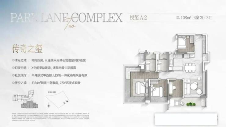 创新设计:270°U型无柱飘窗(主卧18米采光面,景观视野对标豪宅)