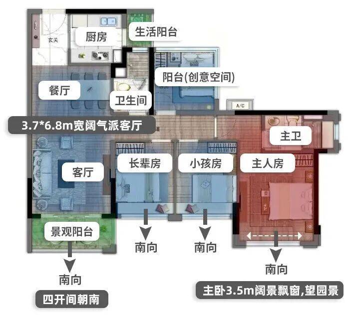 建面约112㎡四房户型图