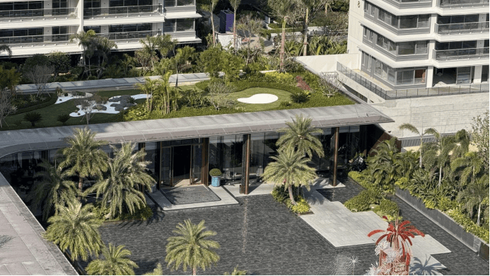 此前规划的景观廊桥,明显被玻璃、门封闭起来,实际情况就是成为了天正·三亚湾壹号售楼处的业主会所。