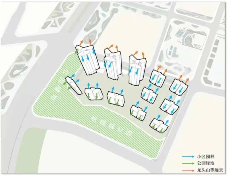 基于此,项目放弃利益最大化的围合布局,首期利用中轴对称排布约12栋住宅;