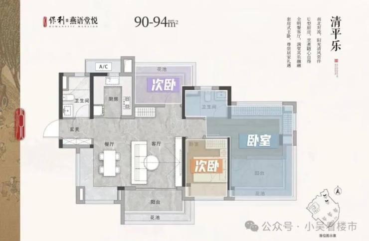 另外,项目还有94平横厅三房户型以及120平竖厅四房户型在售。