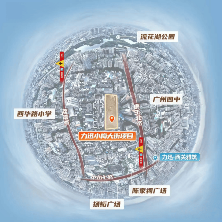 力迅樾公馆所在的西关芯,是广州城轴的“芯”之所在。从南越国宫署遗址到明清十三行商埠,这里凝聚了千年商都的文化精华。项目择址西关“小梅大街”黄金坐标,既避开主干道与高架喧嚣,又毗邻城光荟、力迅6索商业街、扬韬广场等商业配套,实现真正的“闹中取静”。