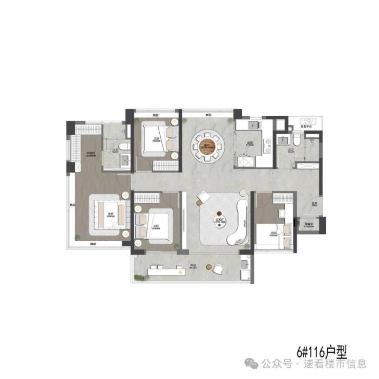 项目的主力户型为80+㎡、90+㎡、100+㎡、110+㎡和130+㎡的三至四房产品。四房户型占据了项目的80%左右,满足不同家庭的需求,且每个户型的使用率可达115%,相当高效合理。