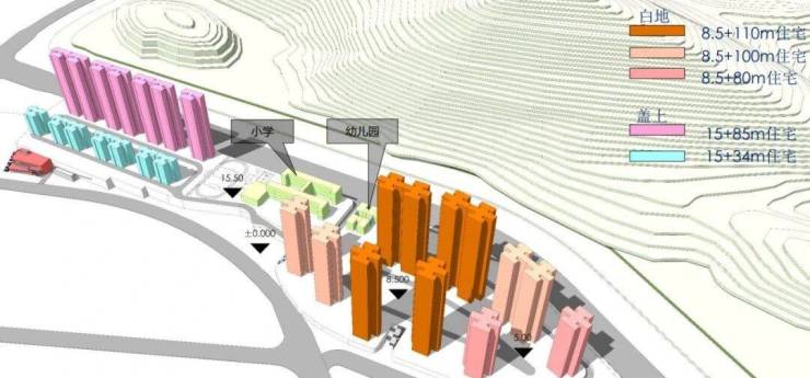 项目分一二两期开发,其中一期将建住宅+1所幼儿园,二期计划建住宅+1所小学。