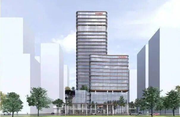 外立面采用木色陶板与全景玻璃幕墙,以“曲水流觞”的涟漪造型呼应珠江文脉,同时融入垂直生态理念,打造空中绿岛与可呼吸的建筑肌理。