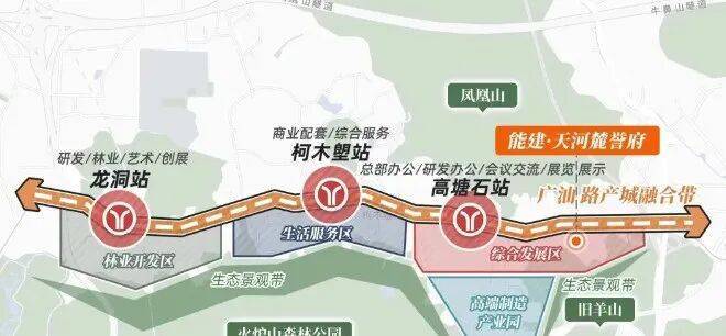 未来片区打造3.8公里广汕路产城融合带,形成高塘石、柯木塱、龙洞三大TOD发展中心,高塘石规划综合发展区及宜居社区。
