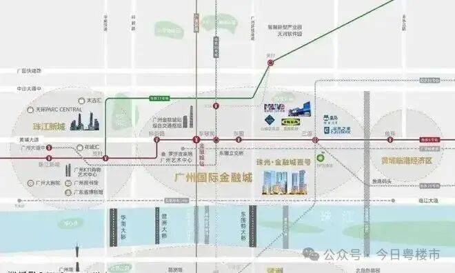 珠光·金融城壹号落子广州国际金融城东部门户要塞,西临珠江新城,北接天河智慧城,南为琶洲商圈,东接黄埔临港经济圈。