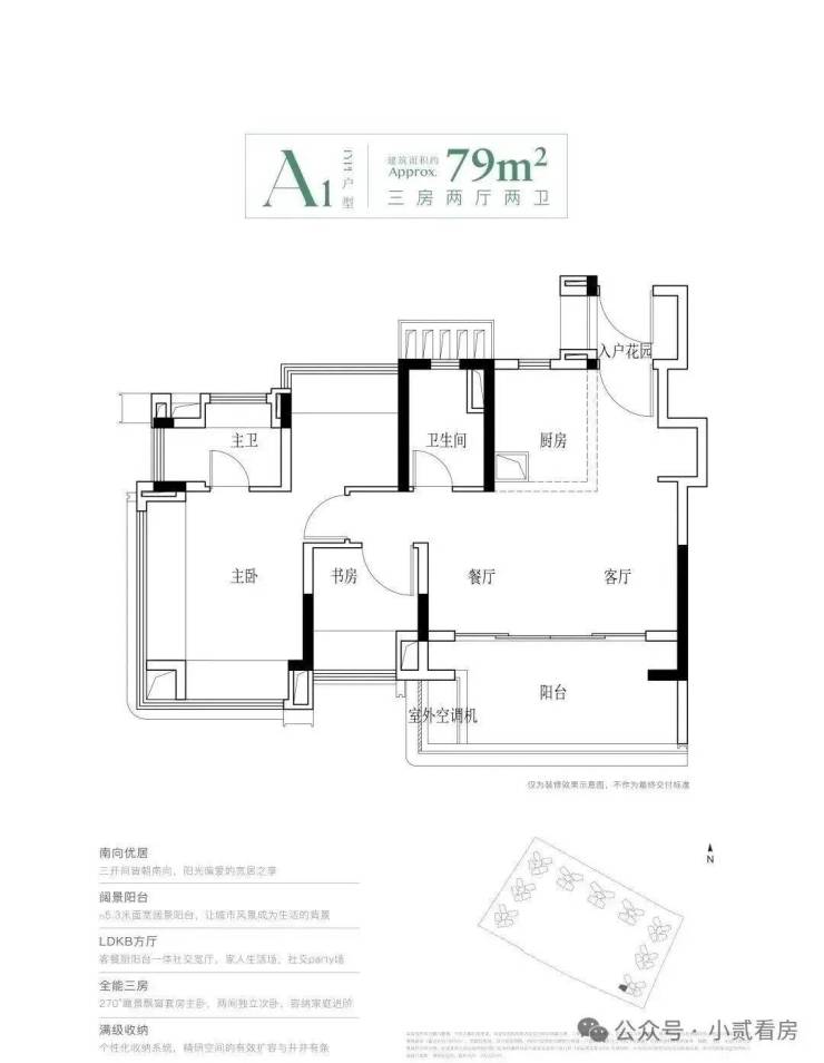建面79平三房,该面积段有三个不同的户型,主要是东南以及西南向,基本分布在一栋,一栋靠近黄埔东路噪音会比较大,但是好处就是高层可以看江。
