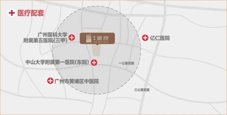 2所三甲医院:中大附属第一医院(三甲)约500米,广医大附属第五医院(三甲)约1.2KM。
