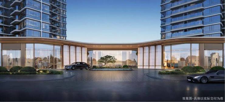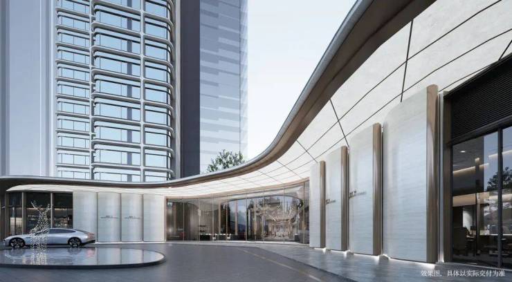 ◎长达约120米弧形主入口界面,城市级封面门庭,集萃名贵奢石臻造,铺陈都会风华,礼遇当代门庭,呈现繁华CBD里的曼妙意境。