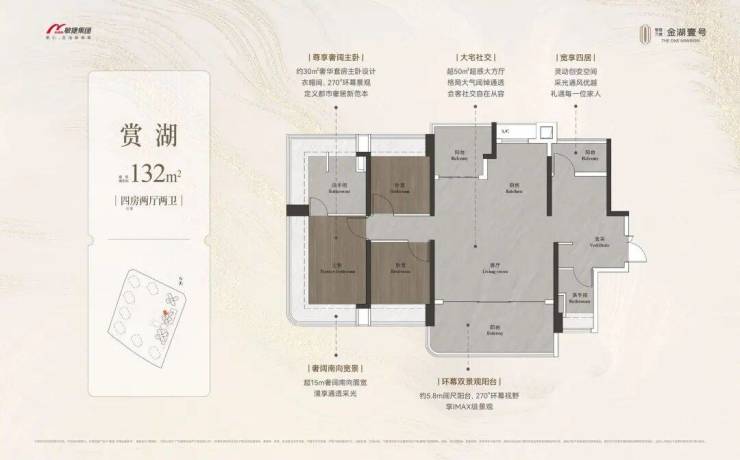 约98-148㎡全南向湖居四房,对标当代华宅范本,创变居住空间的新想象;全南向新规的突破、环拥天地的居住空间、精工雕琢细节之美,打造湖居理想之家,为万博CBD钜献湖居壹号作品。