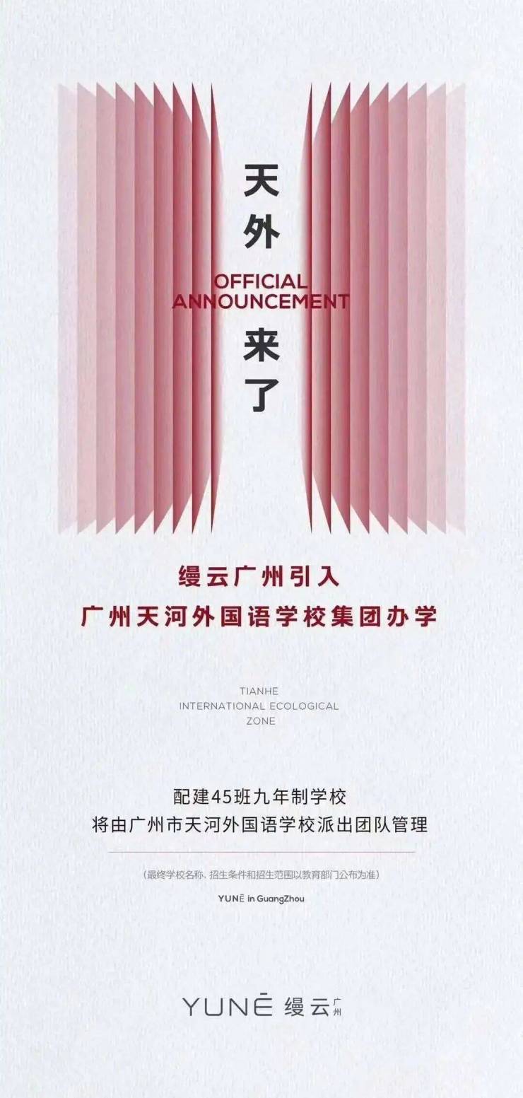 高端人居市场罕见的社区内自带全线12年公立教育配套---幼儿园、18班小学、27班初中, 规模不算大,家门口就是学校,足够方便,已经确定引进了天河外国语学校办学,瞬间吊打了天河东的一众项目,并确定2025年9月开学。