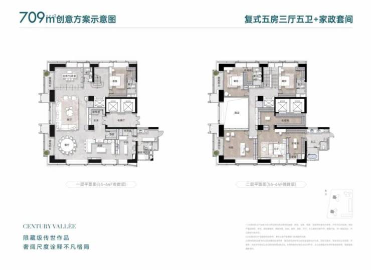 🔸约709㎡复式五房三厅五卫+家政套间(10席限藏)