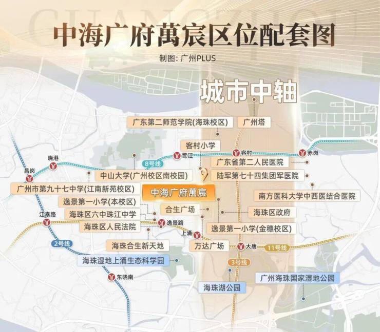地理位置上,项目占据了海珠新中轴,坐落于广州大道南788号,地处广纸新城板块,承接珠江新城、琶洲、天河CBD三大商务区外溢,是广州塔以南近十年招拍挂核芯地块,四心交汇的区位奠定资产价值基础。