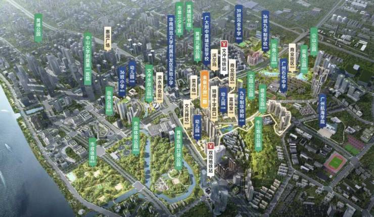 交通与教育资源堪称项目王牌。项目与5号线文冲站和13号线双岗站近在咫尺,二期组团距离文冲站更是仅约200米,一线直达珠江新城;2公里外还规划有高铁黄埔站,实现湾区通勤无缝衔接。教育配套方面,已签约华南师范大学附属高新区实验学校(九年制),距离二期组团约500米,加上社区内规划的8所幼儿园至完全中学,形成12年全龄教育闭环,业主可真正实现“目送式上学”。