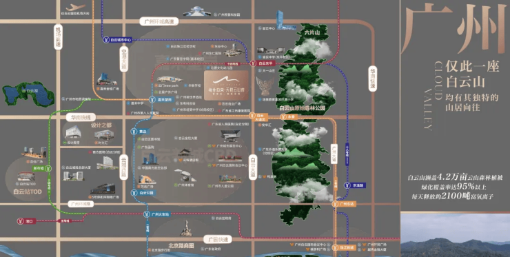 整体建筑楼栋东南倾斜45°,只为最好的瞰山视角和采光通风,每一口鲜氧呼吸,都是来自白云山。