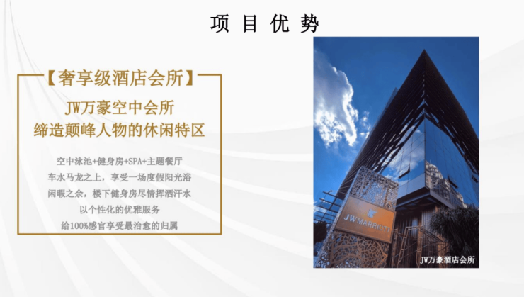 •三大配套:JW万豪酒店、JWhisky-Bar、 魅影电影会所