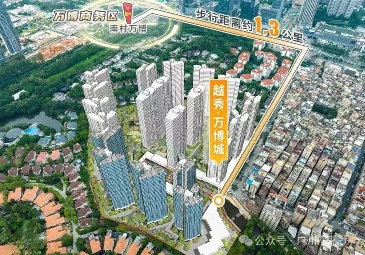 越秀万博城总建面约500万平,但要注意,剔除回迁房及商服配套后,商品房只有约85万平。