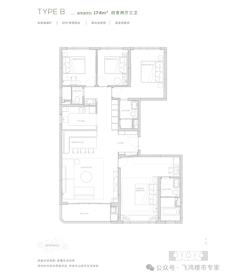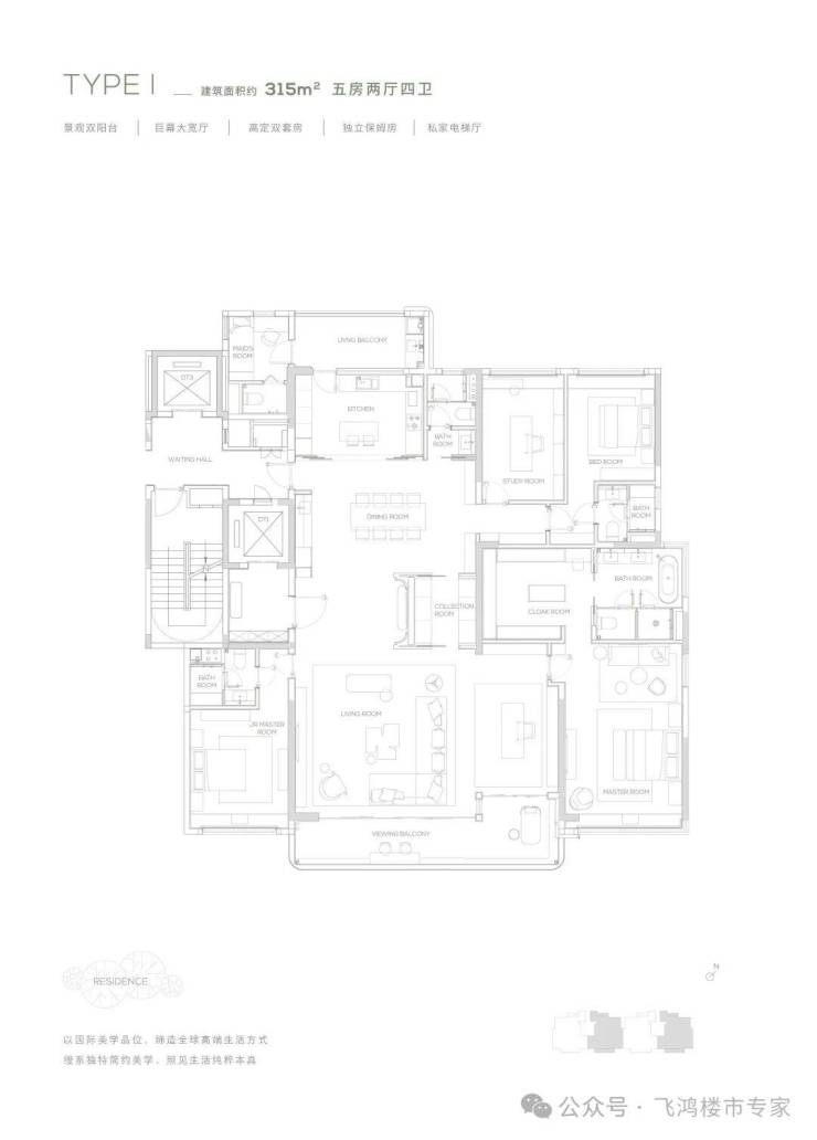 190平方米的五房户型充满了对云端人群生活的独特见解,南向双主卧,中西厨布局,打造纵向超长LDK一体化空间。