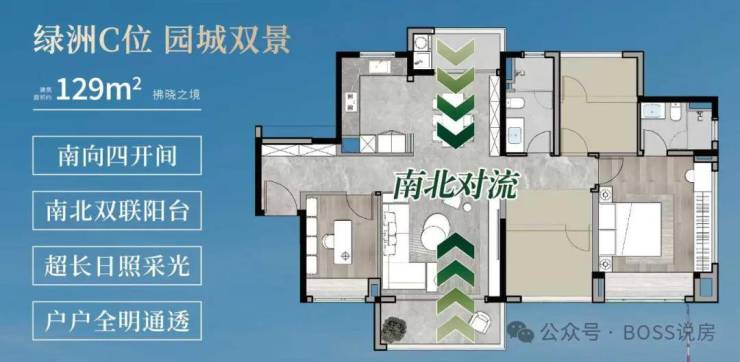 129㎡三房:总价约890万起,单价约6.9万/㎡起。