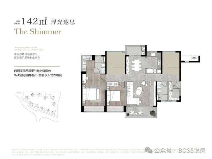 142㎡四房:总价约990万起,单价约7.0万/㎡起。