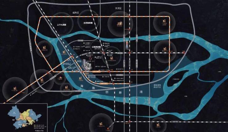 5大繁华商圈:太古仓、江南西、东晓南、中大、琶洲商圈。