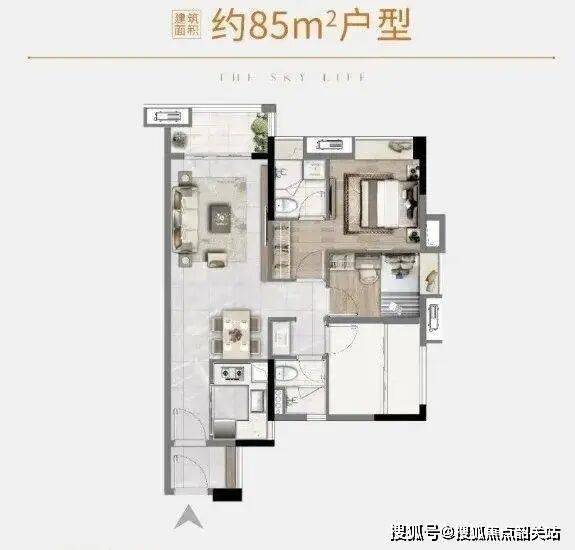 户型涵盖78-125㎡二至四房,全南向设计,得房率超85%;