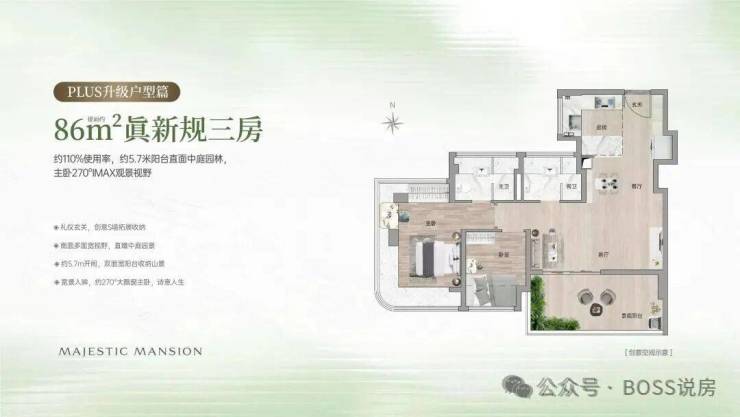 项目南向三面环山,为了充分利用这自然山景,小区采用Y型中庭中轴设计,配套吊层面积最大化,即每栋楼的山景视线能实现最大化的同时,楼栋间的采光和通风也能达到最佳状态。更关键的是,户户朝南,即便是最小面积也是南向采光。