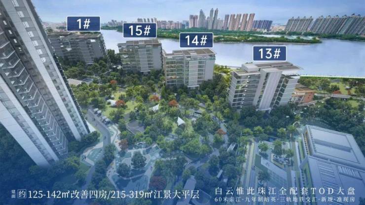 白云首个珠江大平层,125-142㎡南向江景4房,214-319㎡大平层,超高使用率,江景豪宅,市场罕有