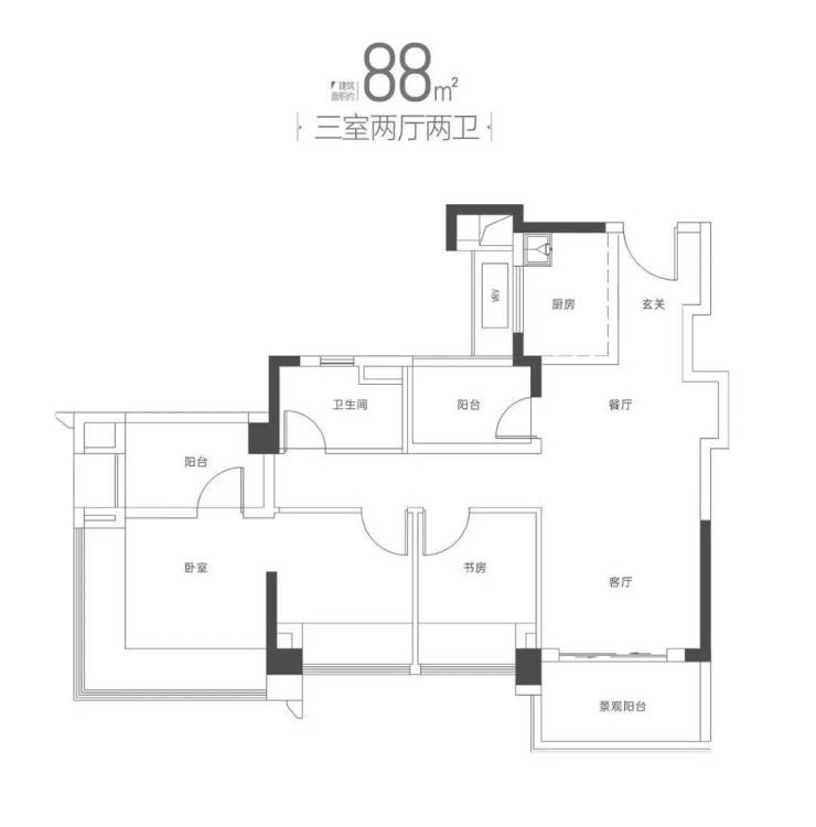 实话讲,88方我觉得有点小了,做三房两卫真挺勉强的,但这个户型很多空间都留给了主卧,所以主卧看起来还挺大,而且在招标上开发商也花了很多心思,总体是比较符合现在小年轻审美的。