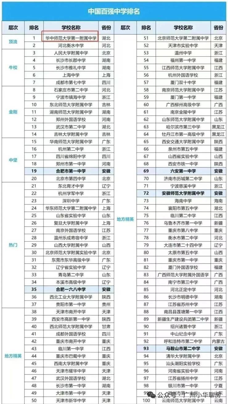 2018年起,已经连续6年霸榜全国百强中学首位。