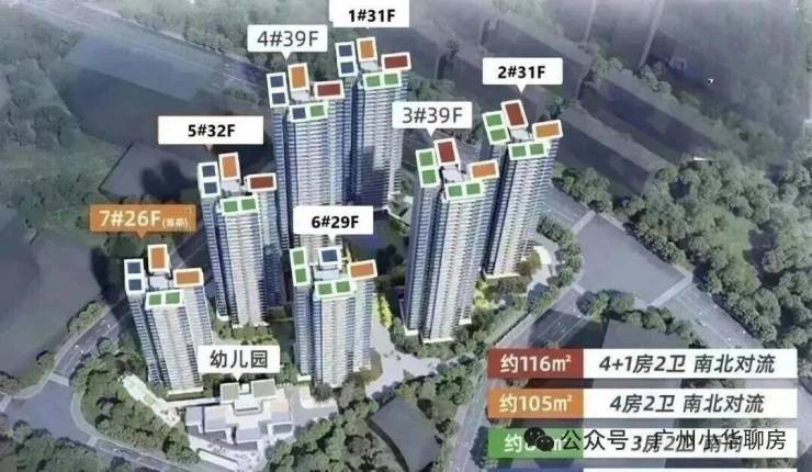 阅山组团全盘一共规划7栋楼,层高26-39层不等,总体货量大约1300+套